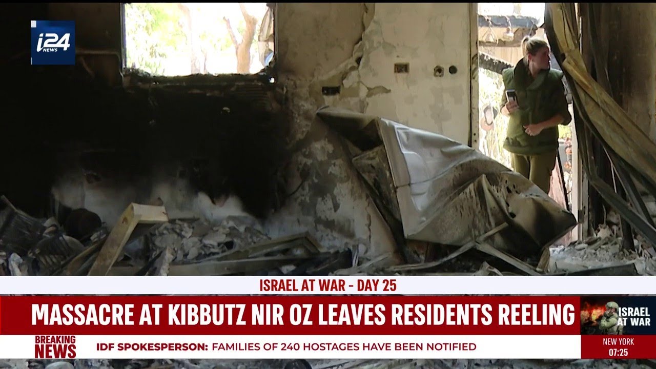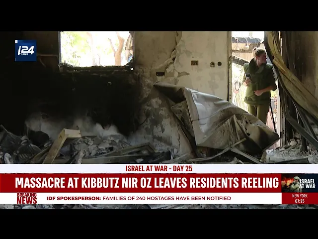 Kibbutz Nir Oz, once a community of 400 today only 300 remain. i24NEWS Correspondent Mary Mcauliffe reports on the massacre that took place here on October 7th. Articles: https://www.i24news.tv/en Facebook: